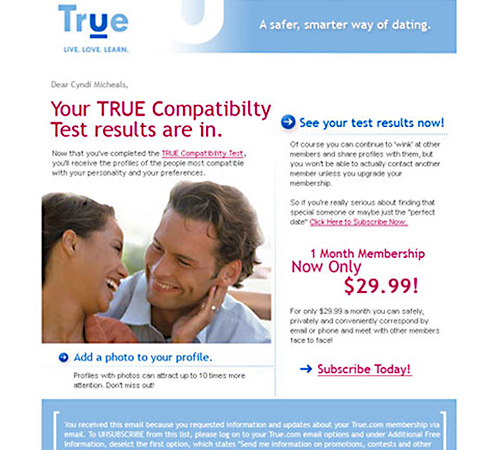 There is a lot of room for differentiation in the online dating space, and True.com had a unique angle – make sure people are being honest.  We worked with True.com to define and deliver email marketing campaigns that had the punch worthy of an industry leader.